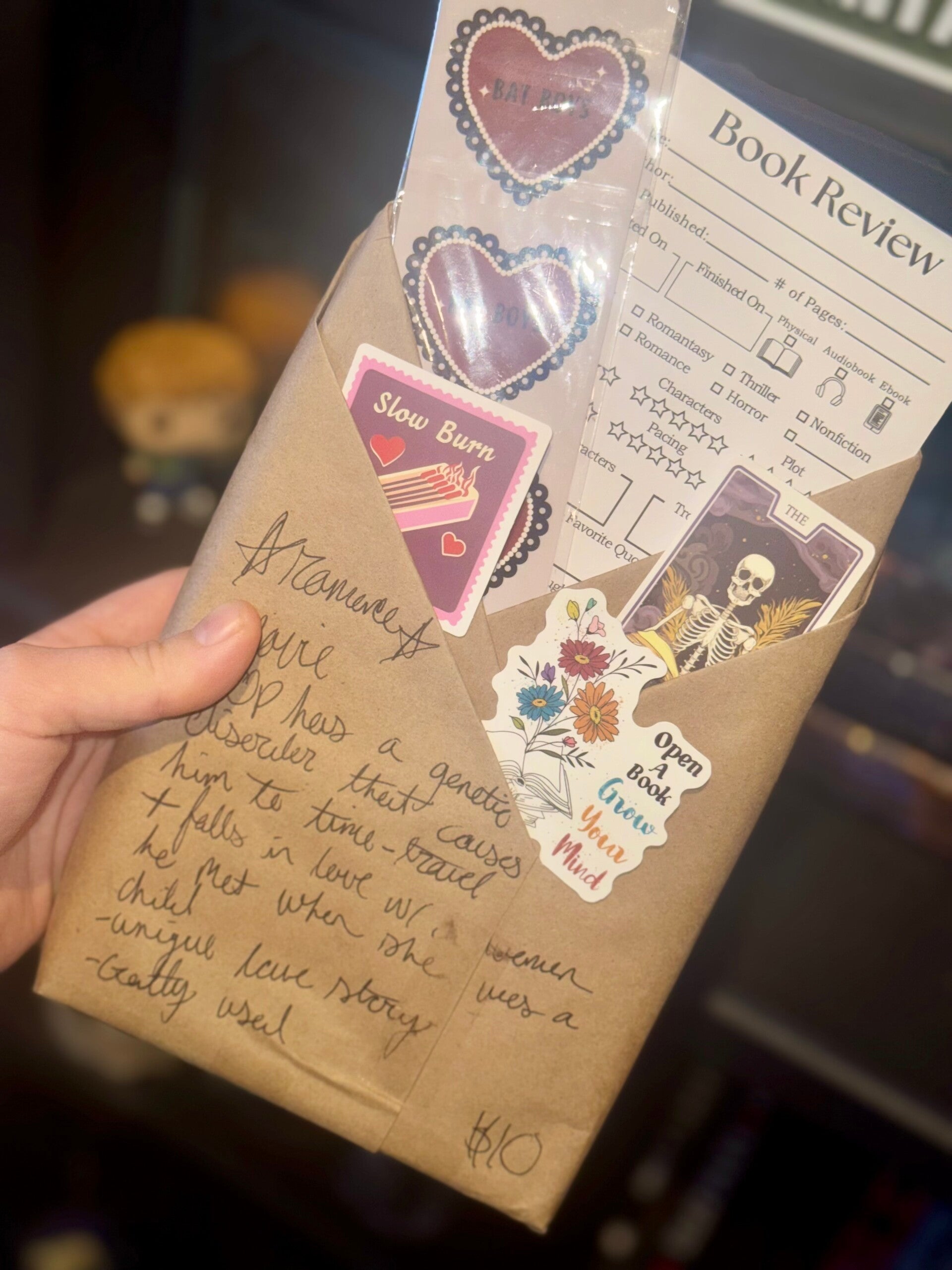 Take a chance on a mystery read! Each bundle includes a gently used book in your chosen genre (Thriller, Mystery, YA, Fantasy, Romance, or Smut), plus: